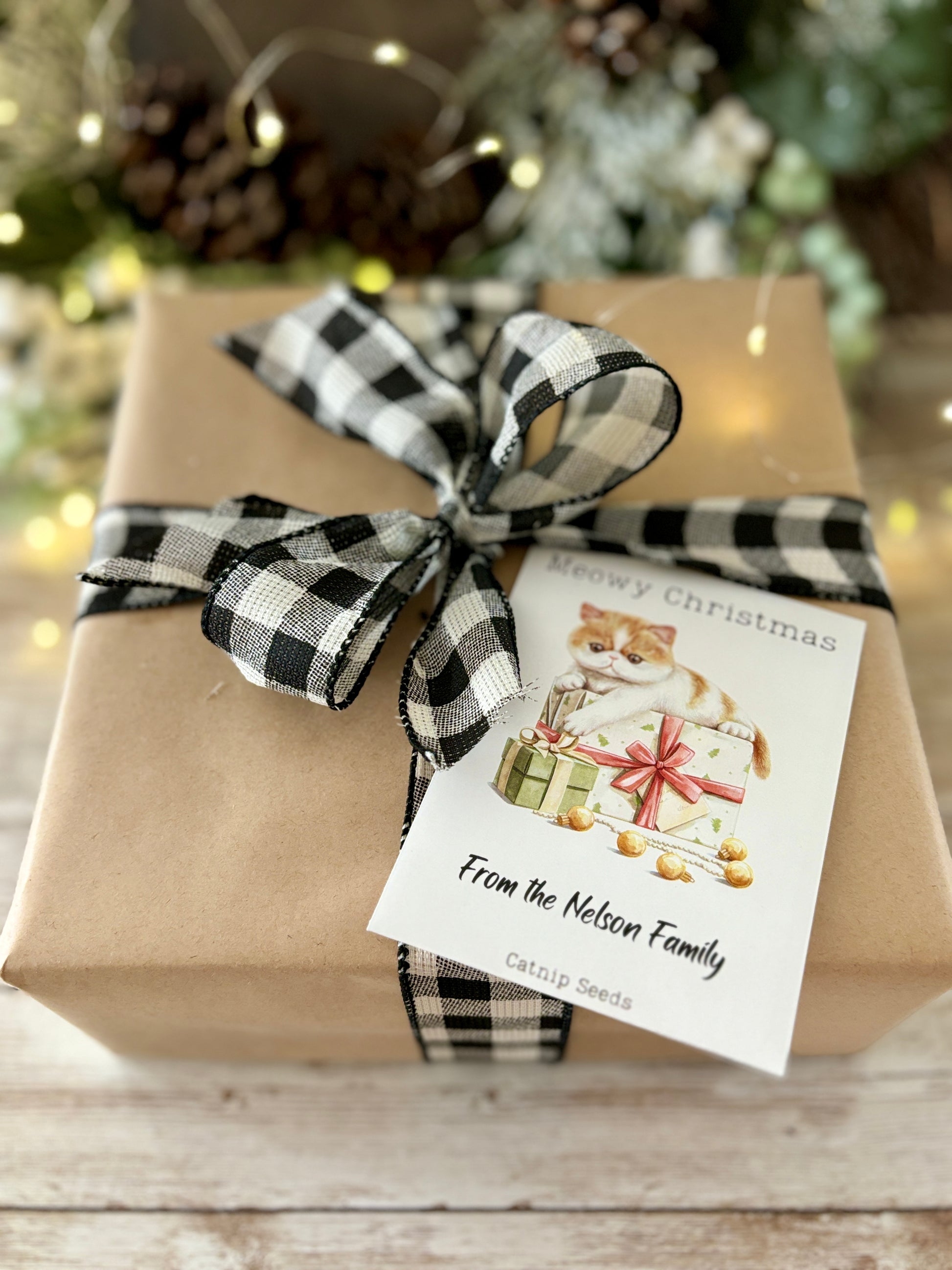 Christmas Kitty Custom Gift Tag or Promotional Seed Packet