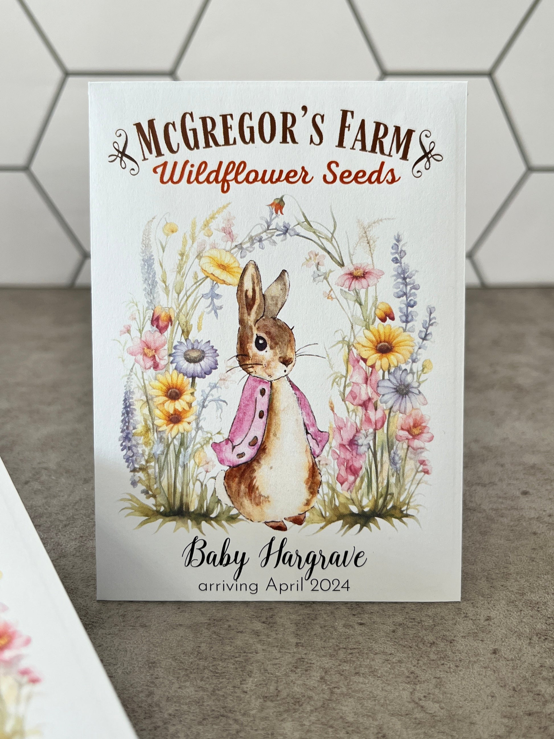 Featuring the timeless art of Beatrix Potter's beloved Peter Rabbit characters, these packets are as charming and innocent as the new life they commemorate. Each packet contains 250-300 wildflower seeds, making them a symbol of the growth, beauty, and potential of your baby.