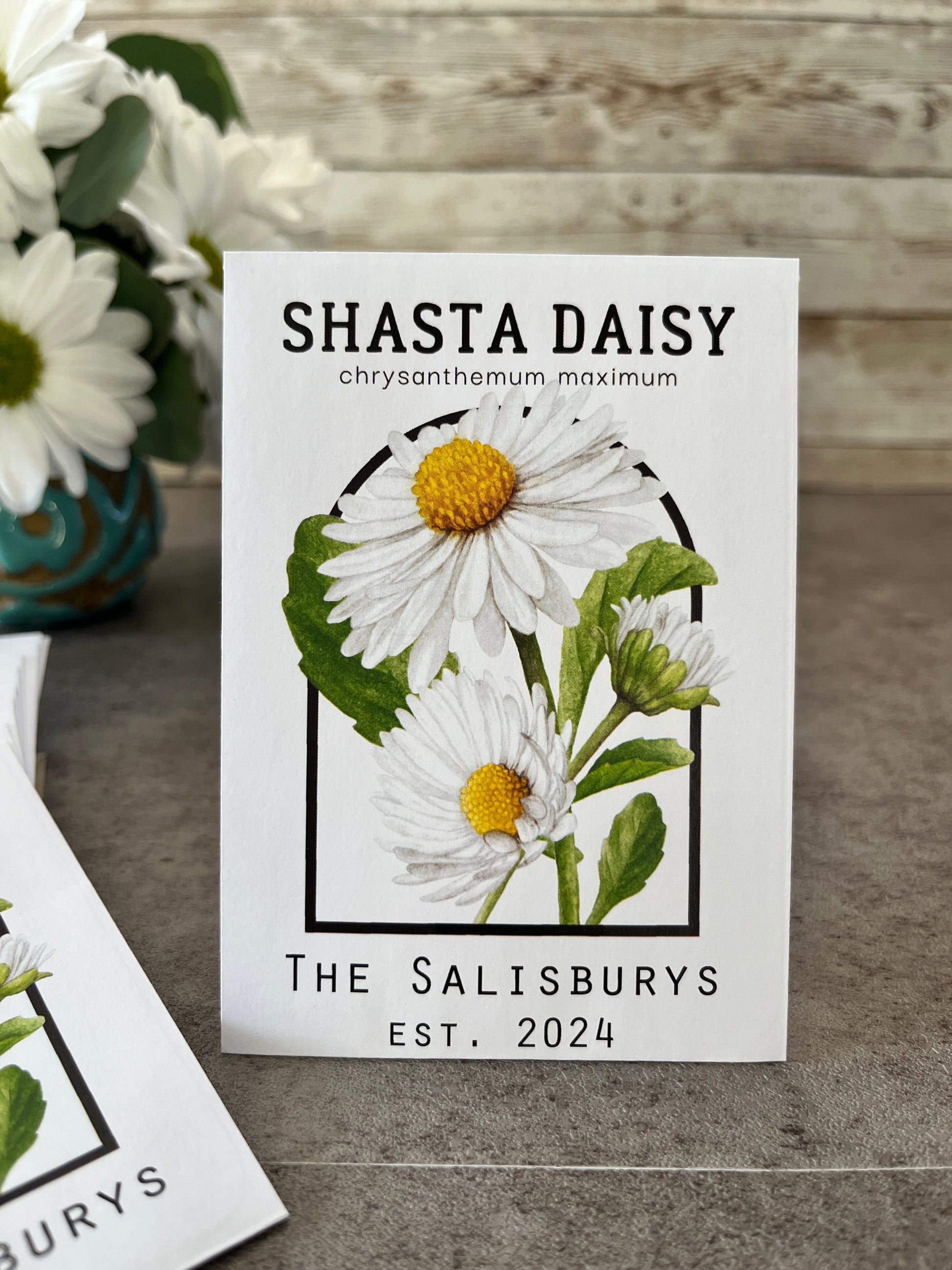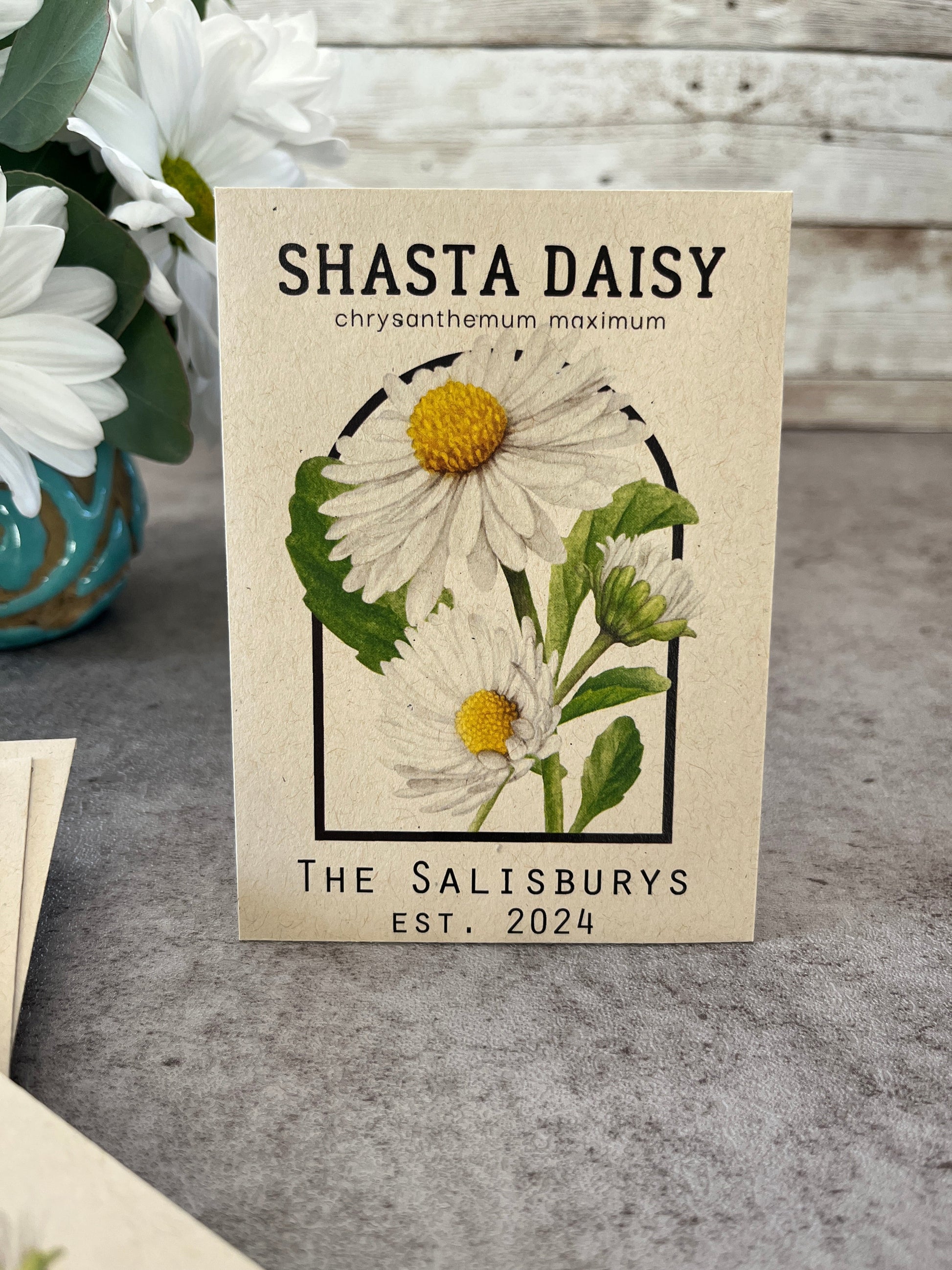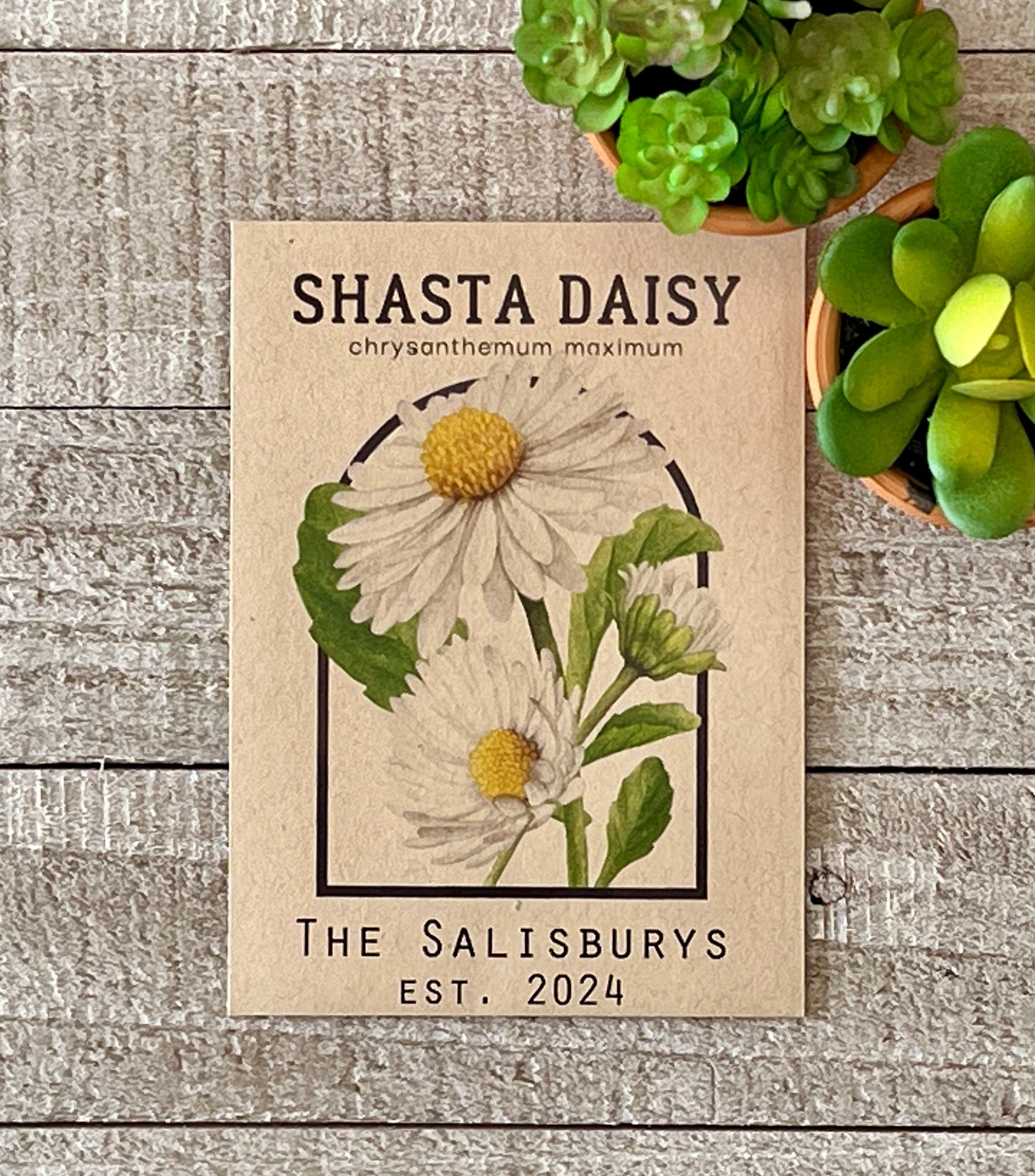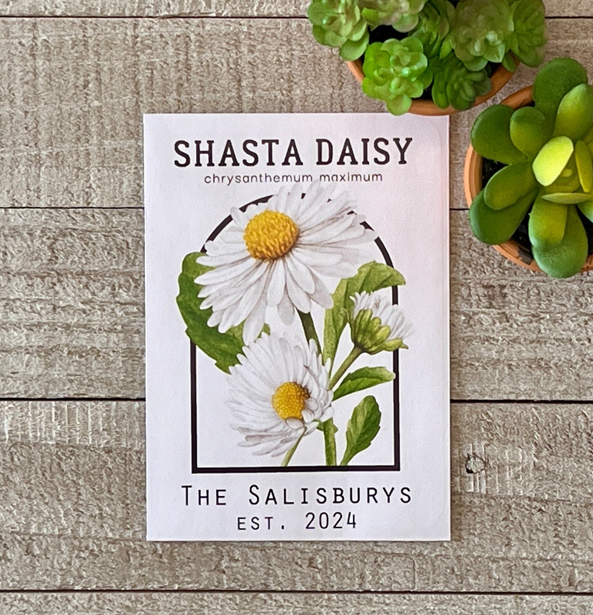 Each packet contains 40-50 Shasta Daisy seeds, a perennial which will bloom either the first or second year and then come back every year with multple gorgeous white and yellow blooms per plant. By planting these seeds, you can help support the pollinators that are so essential to our environment, while creating a colorful and diverse garden that will bloom year after year.