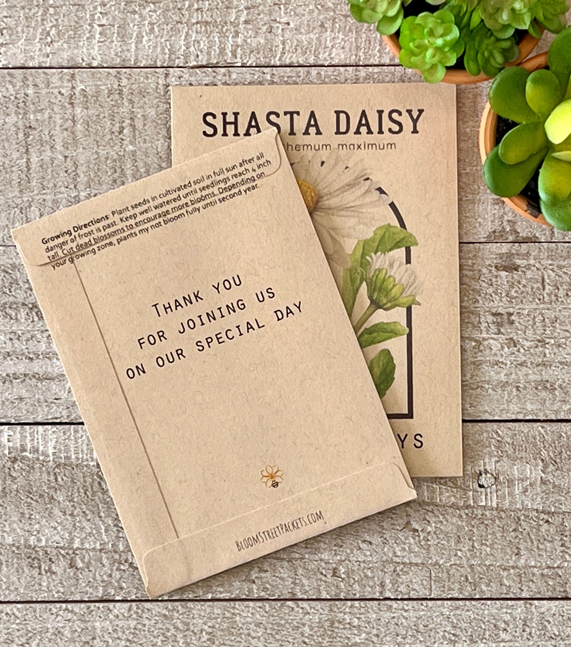 With these customizable seed packet favors, you can show your commitment to the environment and your guests in a unique and meaningful way. Order now and bring a touch of beauty and inspiration to your special day!