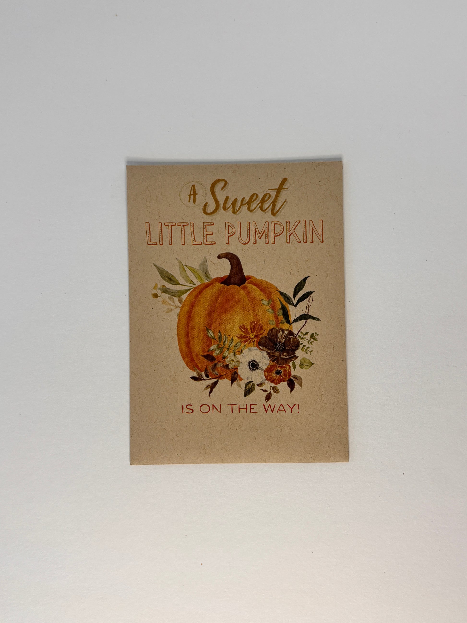 Make your Fall baby shower memorable with Sweet Little Pumpkin Orange Seed Packets. Each packet includes 10–15 Little Sugar pumpkin seeds and can be personalized with your baby’s name and due date. Perfect as eco-friendly, charming favors for your guests, these heirloom pumpkin seeds grow into delicious pumpkins for pies, soups, and roasting. Available in white or Kraft brown, 3.25” x 4.5”, ready to hand out and enjoy.