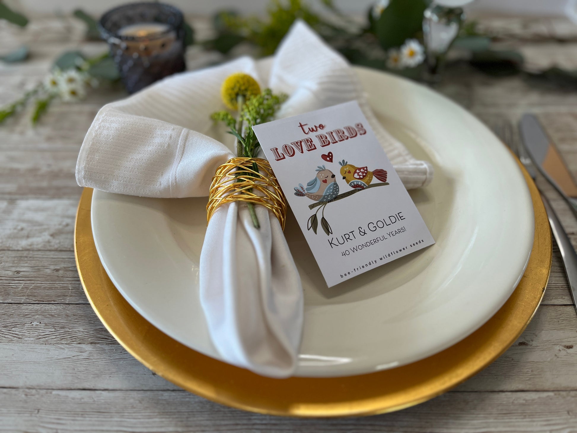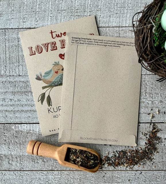 Give guests the gift of gorgeous butterflies with this butterfly garden seed packet. The beautiful butterfly on this packet makes a stunning statement, as well as a lovely favor for your wedding, bridal shower, or birthday party. Also perfect for Earth Day, promotional items, or thank you gifts for customers. Order in bulk for best pricing. Each packet contains about 200-300 non-gmo, open pollinated, bee-friendly wildflower seeds. Our packets are sustainably sourced using green energy and recycled materials.